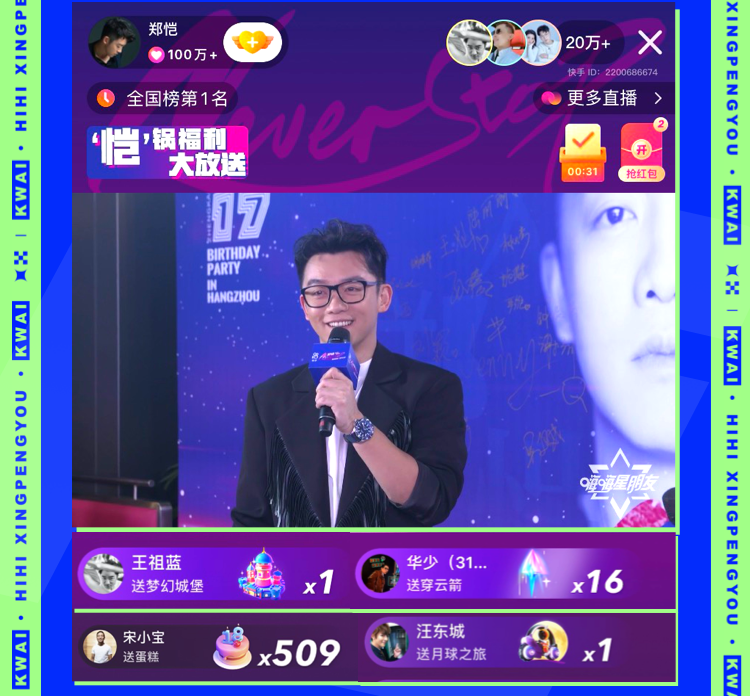 作为竞品的快手同样也不甘示弱,在继春节期间推出连续26日的《超级播》之后,这次又联合一众明星打造了66场直播。