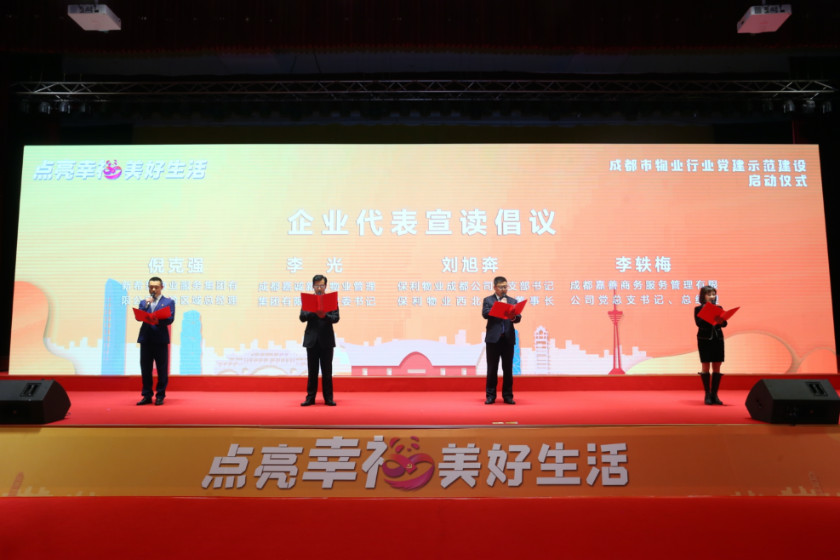 启动仪式上,市委党建办专职副主任谢祥智现场宣读了《关于同意设立中国共产党成都市物业行业委员会的批复》,市委组织部、市总工会、团市委、市妇联分别为“成都市物业行业党委”“成都市物业行业工会”“成都市物业行业团委”“成都市物业行业妇联”授牌,掀开了全市物业行业党建工作新的篇章,开启了全市物业行业党建工作新的征程。