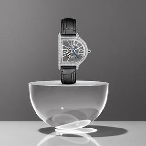 Cloche de Cartier系列腕表则最早诞生于 1920年,“钟形(cloche)”造型令人第一眼便令人惊艳于它的奇特,相比传统表盘,其表盘旋转了90°,让人在保持手臂伸展的姿态下就能够轻松读时,无需将手腕抬至眼前。若取下放于桌面,则可化身“微型座钟”