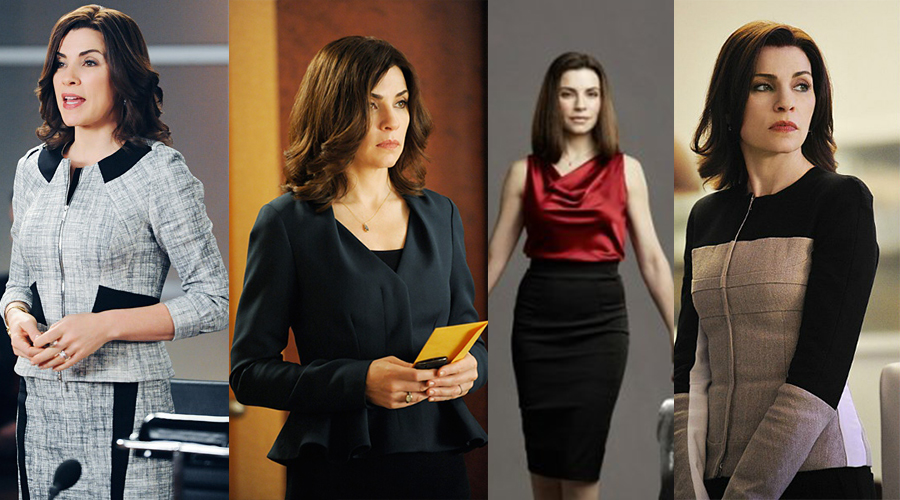 美国律政《傲骨贤妻》中女主角Alicia的着装总是能引起粉丝和时尚媒体的关注和讨论。与大多数律政剧刻板的人物形象不同,Alicia的打扮集专业与时髦于一体。为了凸显Alicia的专业素养,在律所、法庭出现的时候她总是穿着职业套装,而Alicia在工作之外也是一位很有魅力的女性,感情戏份也多,读大学的时候更是女神级人物。所以有设计感、有细节的服装才能让她的形象丰满起来。假设Alicia的穿着十分传统古板,那么即使剧本再好、台词再有力度,恐怕也无法使其形象鲜活。