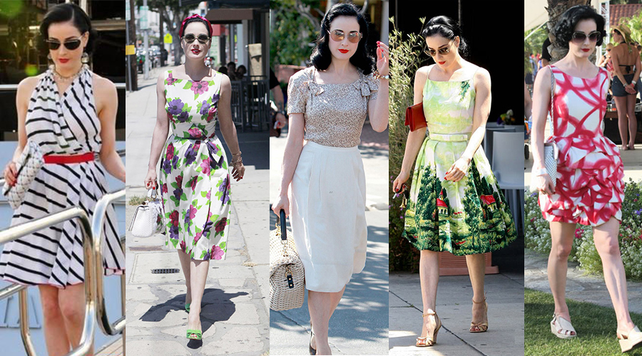 美国脱衣舞演员蒂塔·万提斯(Dita Von Teese)即使是出门逛街也很少穿T恤、牛仔裤这些基本款,因为她的形象气质更加适合复古、美艳的着装,虽然看起来戏剧化了一点点,但那又有什么关系呢?这类衣服就是她的Dress Code,太平淡的衣服反而会让她泯然众人矣。