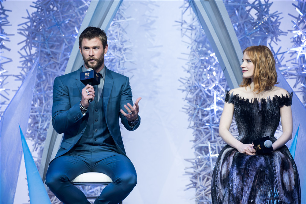 由“锤哥”克里斯·海姆斯沃斯和劳模姐杰西卡·查斯坦等四位好莱坞明星主演的《猎神:冬日之战》在京举办发布会,主演“猎神”携片中爱人“女勇士”一同来华。