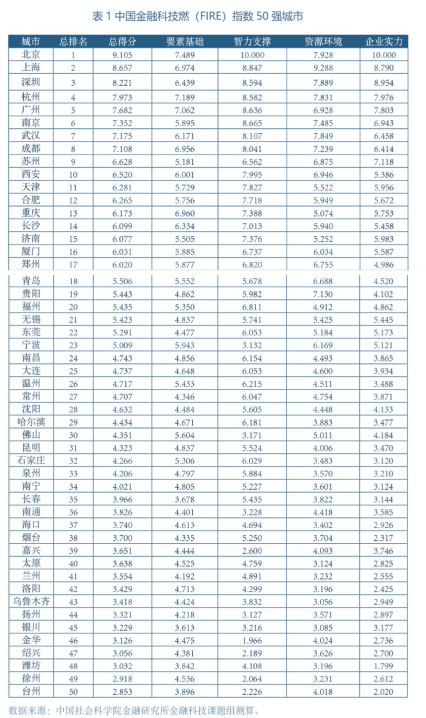 附中国金融科技50强城市排名