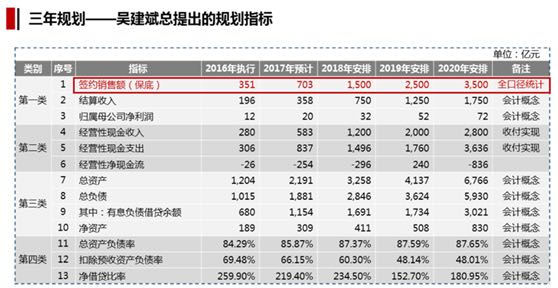 据时代财经报道,入职不久的吴建斌提出阳光城三年规划,2018年到2020年,公司全口径统计下的保底销售安排分别是1500亿、2500亿与3500亿。到2022年,公司销售规模、利润率进入行业前五强。