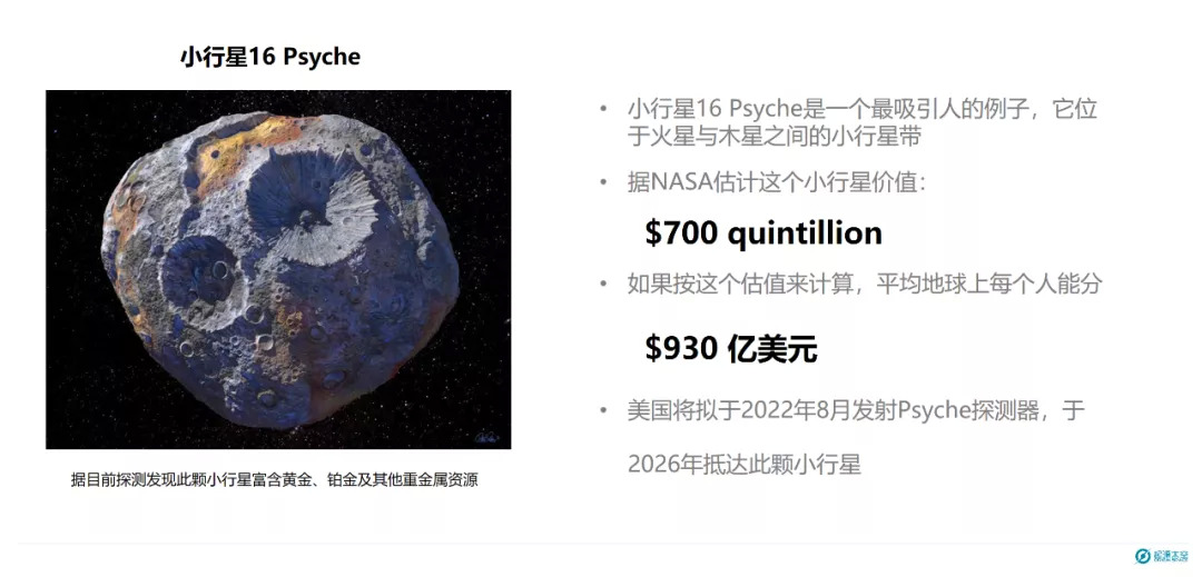 麻省理工学院文章曾估计,在地球上新开发一座稀土金属矿约需10亿美金。相较而言,在不远的将来把一颗体积较小的小行星带回地球,需要的成本不相上下。高盛的研究报告显示,太空经济这个不为公众所熟知的领域,未来20年间行业规模有望达到数万亿美元。