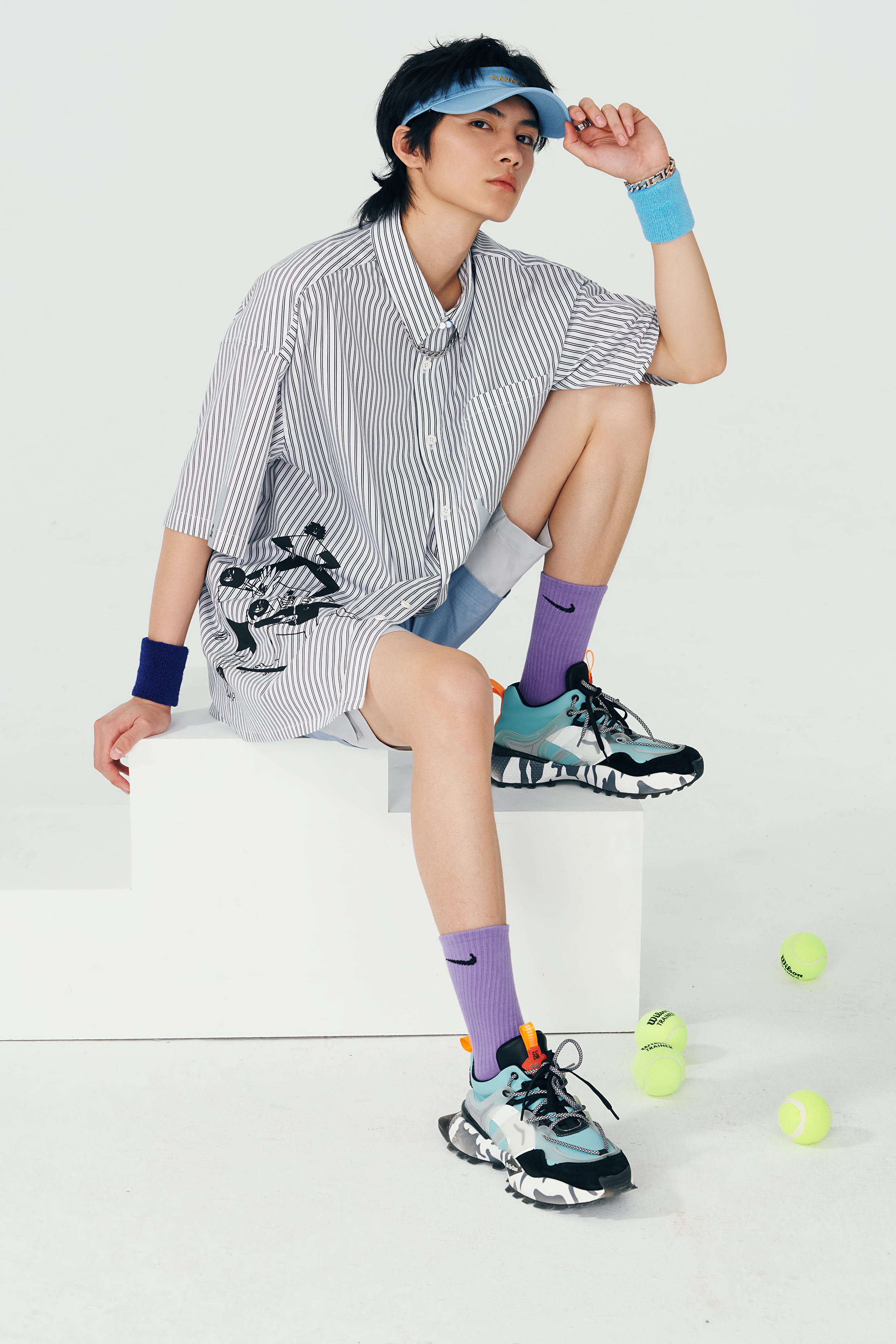 透过JACK & JONES与艺术家Radio Woon的联名系列,展现了潮流与艺术和运动精神的前卫碰撞,以运动的活力与快乐为本作为系列服装的核心精神,以宽阔、街头的oversize版型,加以扎染、贴布、拼接等工艺,打造趣味潮流的运动装备。黑白线条的插画艺术与街头运动元素相结合,营造轻松且充满活力的时尚感。