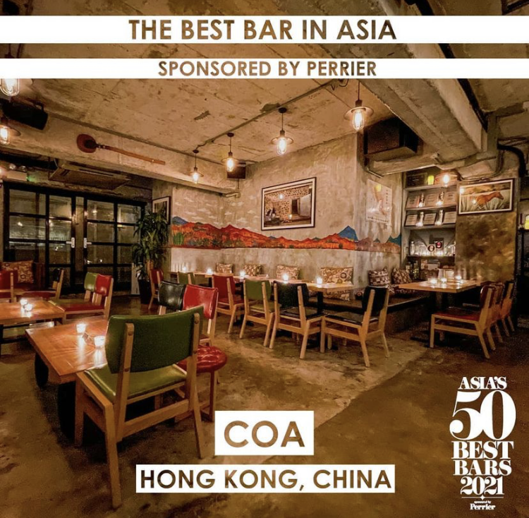 5月6日,“2021亚洲50家最佳酒吧”(Asisa’s 50 Best Bars 2021)发布了位列亚洲1—50名的酒吧。中国香港COA斩获榜单榜首,加冕本年度的亚洲最佳酒吧。