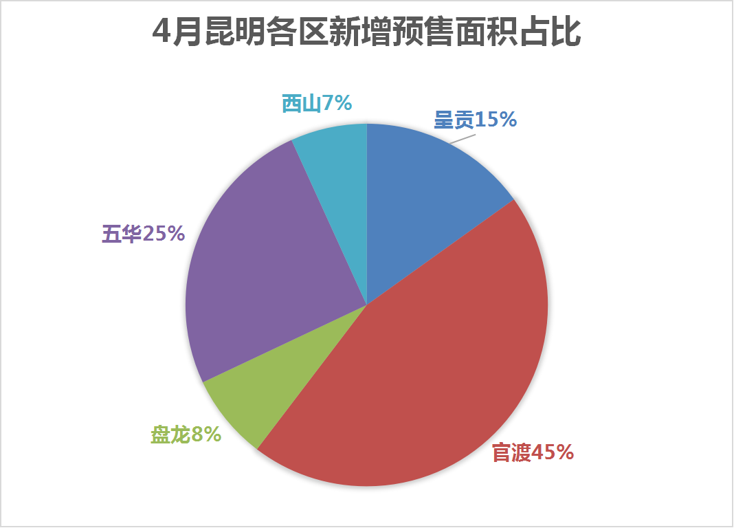 从预售证发放的情况来看,4月昆明发放的预售证分别位于官渡、盘龙、五华、西山、呈贡五区。