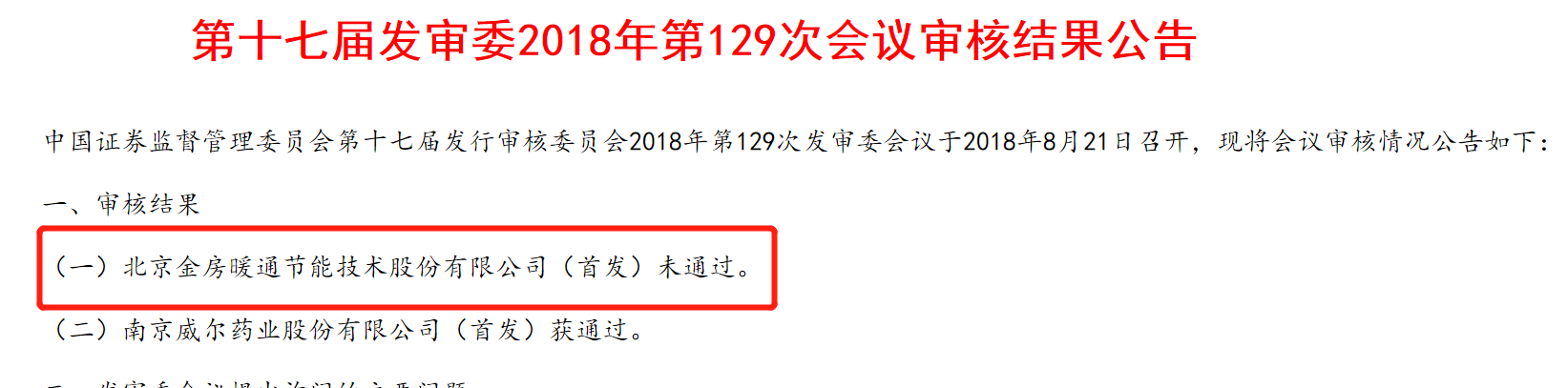 最后是证监会第十八届发审委这边,在5月13日安排了北京金房暖通节能技术股份有限公司(下称金房暖通)的上会,这家公司可是最早在2017年8月22日就报送过自己的招股说明书了,也曾在2018年8月21日于第十七届发审委2018年第129次会议上有过尝试,但最终录得“未通过”审议结果,如今再次亮相,胜利女神是否抛来橄榄枝,有待观察。
