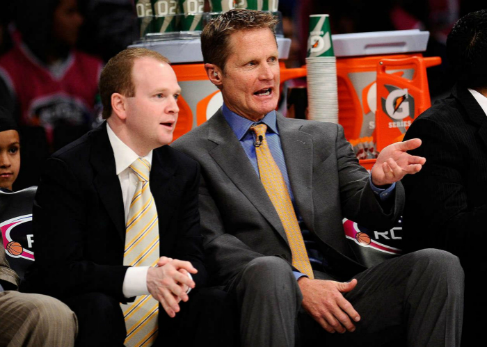 专车到达餐馆后,助理教练尼克·尤恩(Nick U'Ren)在向司机表示感谢后,说道,“让我隆重介绍一下,这就是我们的主教练史蒂夫·科尔。”