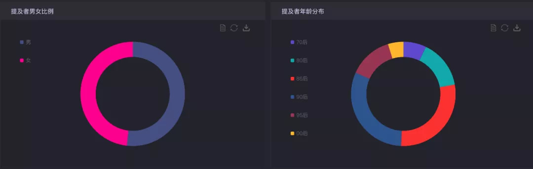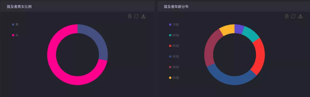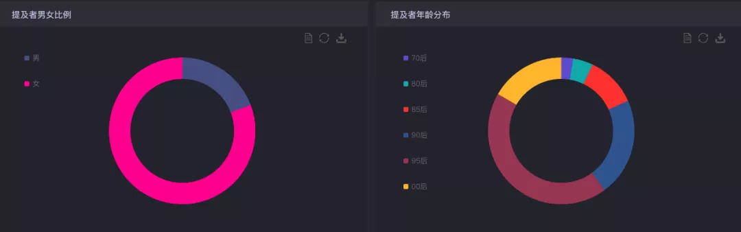 根据时趣洞察引擎来看,关注杨天真的以女性为主,从年龄来看,90后更具人气,85后和95后不相上下。