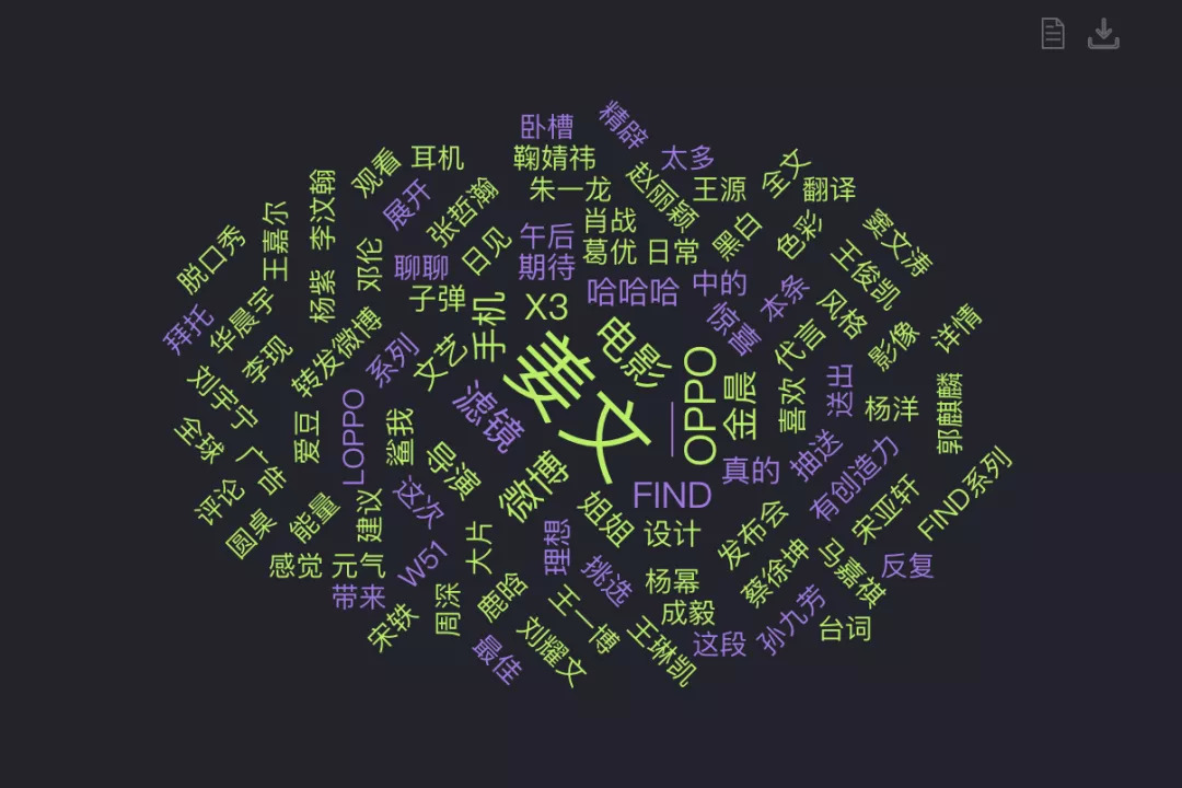 根据时趣洞察引擎数据显示,关于姜文的关键词更多是“电影、文艺、鲨我”,除此之外,也在这次和品牌的合作之后,增加了品牌、手机和滤镜等讨论度。可以说,姜文在社交营销环境中是一位“很干净”的明星。这对于品牌来说也隐形的减少了不少竞争者,对于提升品牌形象和质感更具有独一性和辨识度。