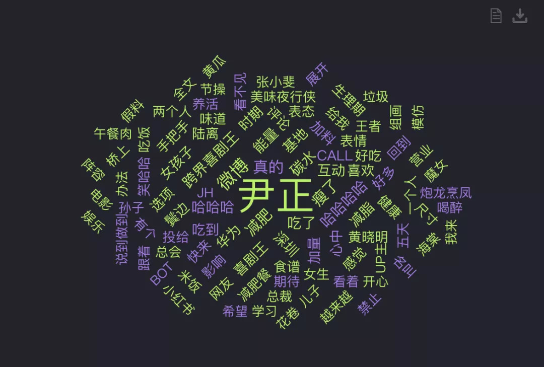 最近,尹正可以说是非常火,每天网友们都在关注尹正吃什么,瘦了没有。在谈到尹正的时候,时有趣发现像“减肥、真的、瘦了、吃了、碳水”等关键词频率很高,从热度、话题度来看,尹正也很有“非主流”明星的潜质,品牌可以在这些场景、话题下搞事情了。