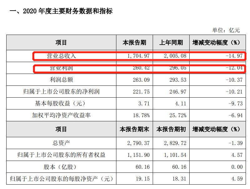 2020年,格力电器全年营收1704.97亿元,同比下降14.97%;营业利润260.42亿元,较上年同期下降12.04%;归属于上市公司股东的净利润221.75亿元,同比下降10.21%。其中,格力电器的核心空调业务营收1178.82亿元,比美的空调营收少了33.4亿元。