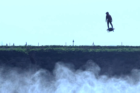 【Flyboard Air飞行滑板载人试飞成功】看过蜘蛛侠系列电影的应该都知道有绿魔这个角色,他每次出场时都会踩着那块会飞的滑板。在现实生活中,真的有人造了一块内置喷射引擎的飞行滑板Flyboard Air,而且还成功的飞起来了。这块叫Flyboard Air的飞行滑板内置了3个喷射引擎,主引擎在滑板的中间,主要提供强大的推力推动滑板升空,最大的飞行高度达到10,000英尺,约3000米。最高飞行速度也可以达到每小时150公里。由于体积限制,所以飞行滑板的燃料只能提供大约10分钟的留空时间。虽然试飞成功,但这款飞行滑板目前还处于原型阶段。