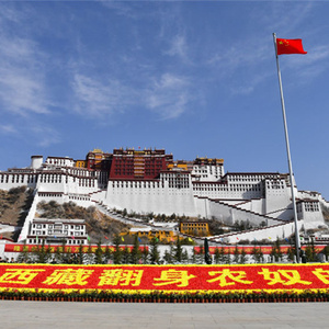 ↑2021年3月28日拍摄的拉萨布达拉宫广场。当日,西藏各族各界群众庆祝西藏百万农奴解放纪念日。