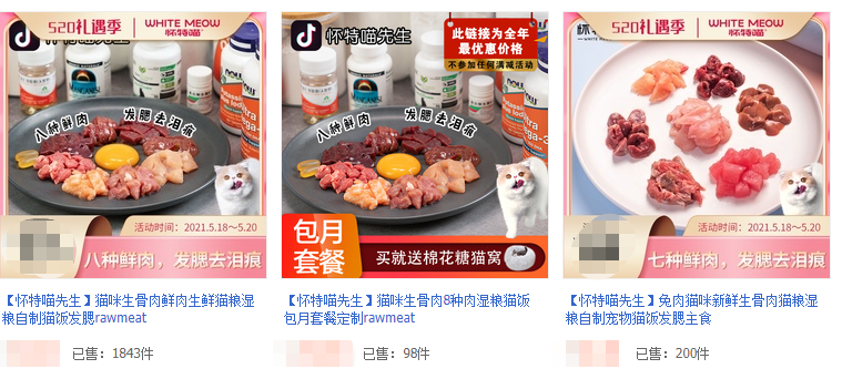 老鱼的朋友张建彬,创建的品牌“怀特喵先生”在抖音有400万粉丝,借助自建生骨肉生产基地以及抖音的流量支撑,完成在生骨肉行业的立足,在聊天过程中说了很多次“没别的想法,就是想把生骨肉做到主粮市场,让猫能少生病并且活得更健康”。