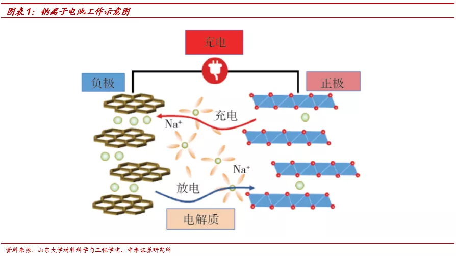 钠离子电池是什么?元素周期表上,钠与锂同属于碱金属主族,拥有与锂相似的物理性质与化学性质。与锂离子电池类似,依靠钠离子在正极与负极之间可逆地迁移实现充放电,正极和负极均由允许钠离子可逆地插入和脱出的插入型材料构成。钠离子电池的研究起始于上世纪70年代,但与锂离子电池相比进展相对缓慢,2010年前后学术界开始重视钠离子电池的研发,2015年第一代钠离子电池开始迈入商业化进程。