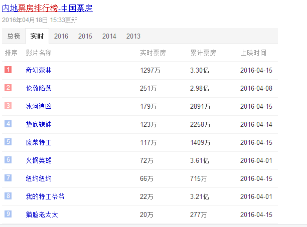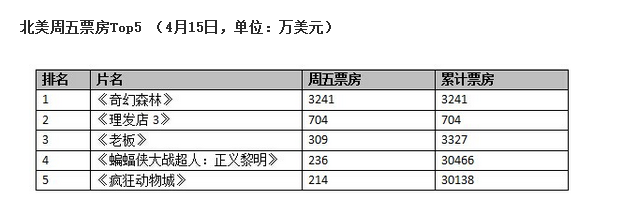 自影片《奇幻森林》上映,四天还不到,票房就达到3.3亿。而就在4月15日,迪士尼出品的真人电影《奇幻森林》在北美开画,影片以3241万美元的首日票房成绩成功登顶北美周五票房。这一战绩也意味着影片的首周末票房预计在8700万美元到9000万美元之间。