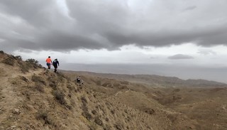 14点,他开车出发了,几分钟后到黄河边上,道路已经无法行车。他下车步行大约两小时,到达牧羊人经常避风的窑洞。窑洞的位置靠近赛道CP3(第三个打卡点)。