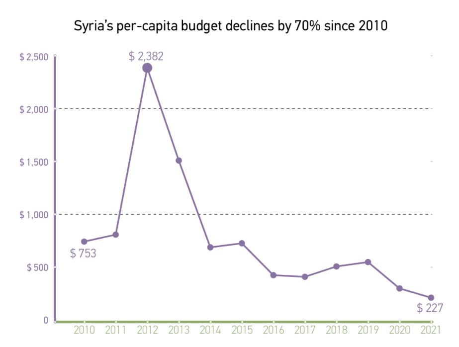 随着现金短缺、货币贬值、再加上新冠疫情,叙利亚政府公布的2021年预算大幅缩水,仅8.5万亿叙利亚镑(按官方汇率约67亿美元),为2011年以来最低水平。