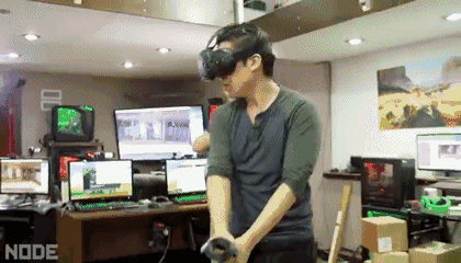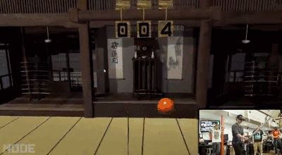 但Atomic VR开发的《Ninja Traine》(《忍者训练》)实现了《水果忍者》的愿景。《Ninja Traine》是支持HTC Vive的一款demo,戴上头显你便可以挥舞刀刃。Kinect的典型缺陷并不会影响它。结合智能动力切片引擎,单边刀刃迫使你仔细思考每次摆动的方向。当水果飞到你的面前时,如果你希望速度足够让你立刻从一个水果移动到下一个,你需要对每一次攻击进行战略思考。