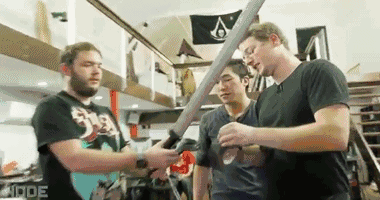 也许小哥们觉得控制器还是不够真实,又绑上了一把剑~