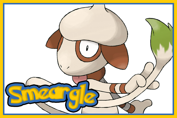 图图犬是个外表白色、部分为咖啡色并可以两脚站立的狗。其英文名“Smeargle”源于“Smear(涂抹)”和“beagle(比格猎犬)”,两个单词微妙地表示了这只精灵的特性。