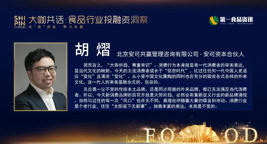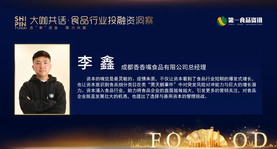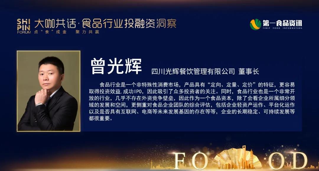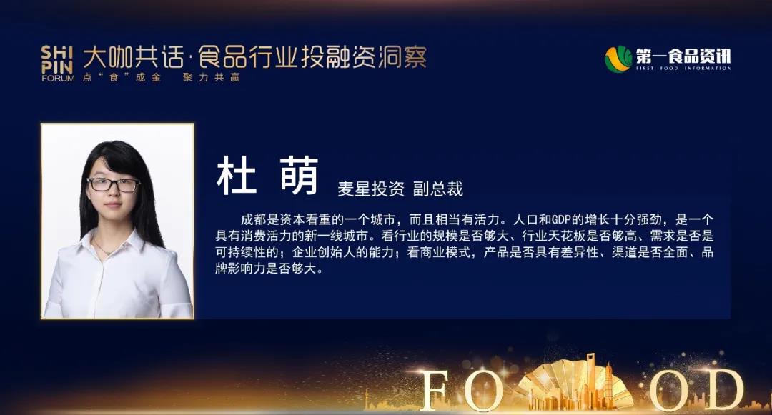 从投资的角度出发,大家看到的主要是能不能走向上市,主要看传统食品企业是否可以持续成长和增长。传统食品行业需要做的事情,第一个是食品的安全,食品的工艺是否符合目前的一个高标准。第二个是品牌是否具有竞争力,能否做到真正的出圈。