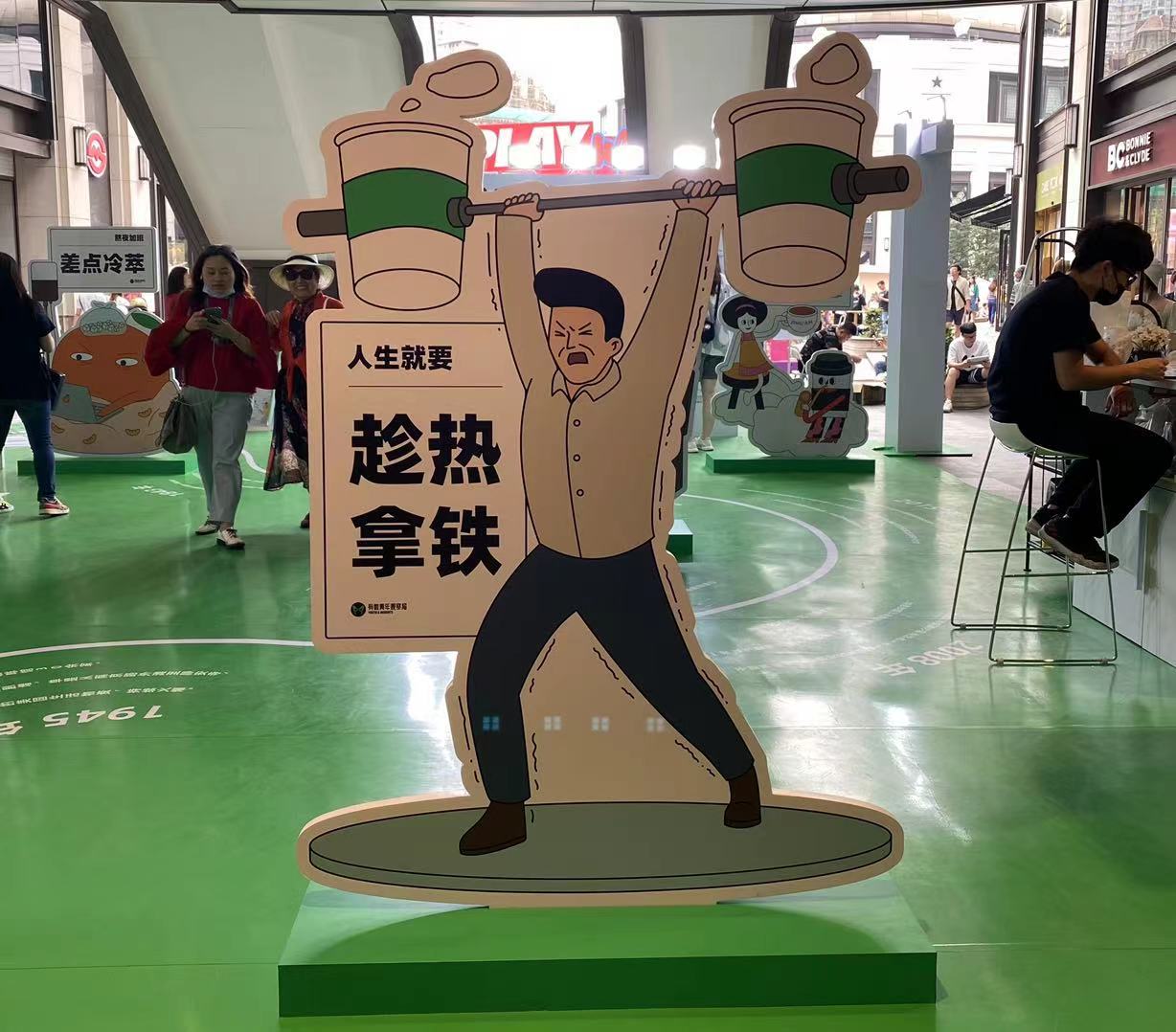 公众号“有数青年观察局”也在现场设置了展位,较有特色的是他们的现场装置,用了不少令人会心一笑的谐音梗。比如“Are U OK?我美式。”“人生就要趁热拿铁。”“心脏骤停,差点冷萃。”“KPI见涨,预算浓缩”……