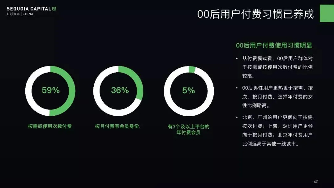 94%的00后都有自己的智能手机,他们有着非常良好的产品付费习惯,其中,59%的用户倾向于按需或次数付费,而5%的用户则有3个以上平台的年付费会员……