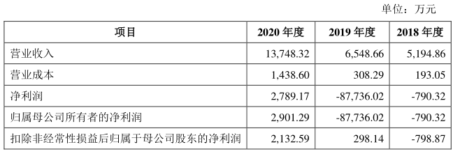财务数据显示,概伦电子2018年、2019年、2020年营收分别为5,194.86万元、6,548.66万元、1.37亿元;同期对应的净利润分别为-790.32万元、-8.77亿元、2,789.17万元。