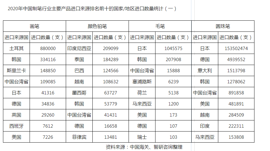 数据显示,2020年我国进口圆珠笔数量第一的国家就是日本。