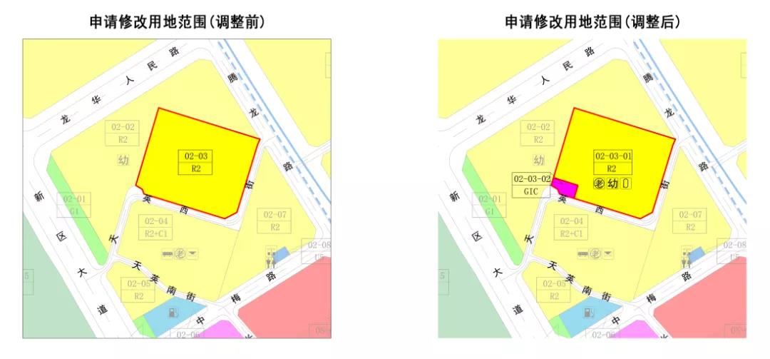 02-03-01地块用作二类居住用地和配套设施用地,增加了6班幼儿园、老年人日间照料中心等配套;