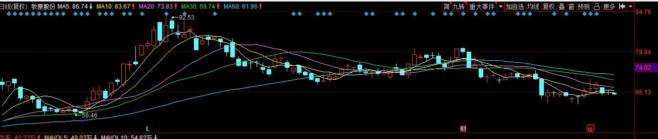 同花顺数据显示,养猪龙头企业牧原股份从92.53元跌到65元以下,4个月内跌幅超过30%,市值蒸发超1400亿元,12.42万股东户均亏损超110万元。