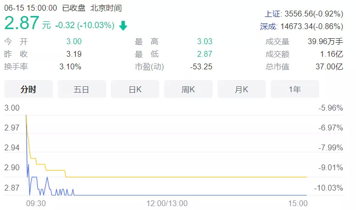 受此影响,6月15日,莱茵体育开盘跌停,截止发稿,其股价跌10.03%,现报2.87元/股。