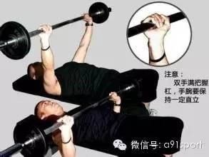 握杠铃的姿势不仅会影响卧推质量,还可能损伤你的手腕。握杠铃不要让杠铃离手腕太高。因为你的手腕会向后弯曲,这会造成两个问题。一、你会失去力量,从侧面看你手肘和手臂的力量并不是直线传递到杠铃上的。二、会损伤手腕,特别是当重量很大时,因为沉重的杠铃会拉伤关节和肌腱。你应该让杠铃深入手掌,并保持手腕略微弯曲。