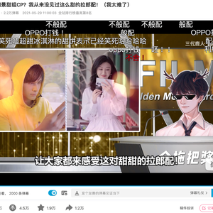以与利路修频频互动的UP主“三代鹿人”为例。他在《创4》结束后发布的两个利路修相关视频中均植入了广告,其中5月29日发布的《利路修和景甜组CP?我从来没见过这么甜的拉郎配!(我太难了)》则直接以利路修和景甜拍的OPPO广告为创作素材。