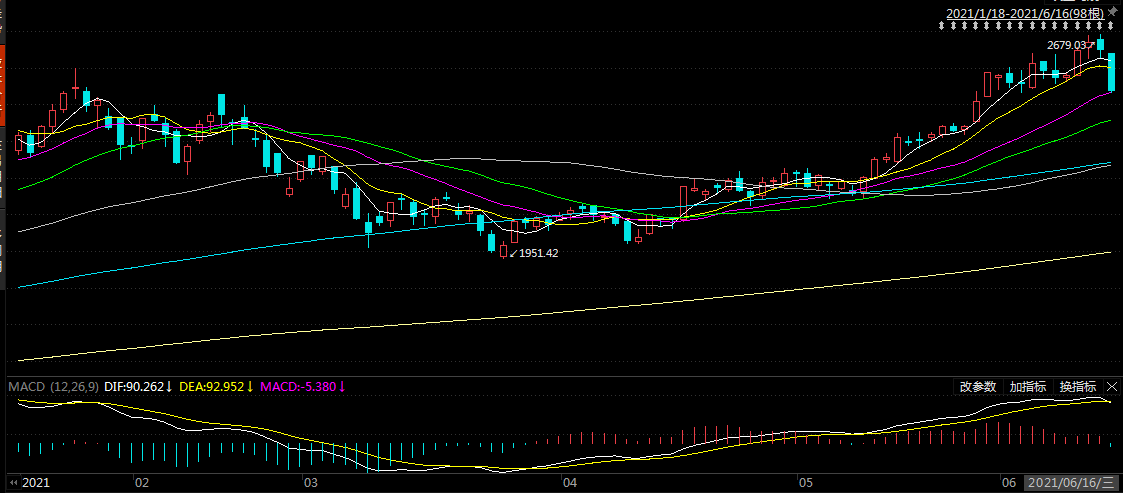 据东方财富Choice数据,5月以来,锂电池板块指数累计涨幅近13%;6月11日,该指数涨至2654.3470点,这是该指数今年以来最高收盘价。而6月15日,锂电池指数盘中一度涨至2679.0320点,创今年以来新高,但当日该指数快速回落最终收跌22.38点,当日该指数微跌0.84%。6月16日,东方财富Choice数据统计的锂电池指数以2618.2260点低位开盘,最终收跌5.1042%,创2021年以来日跌幅记录。