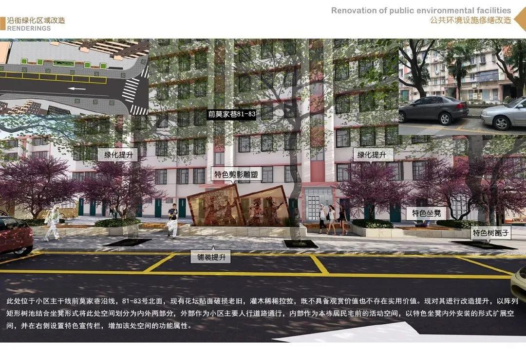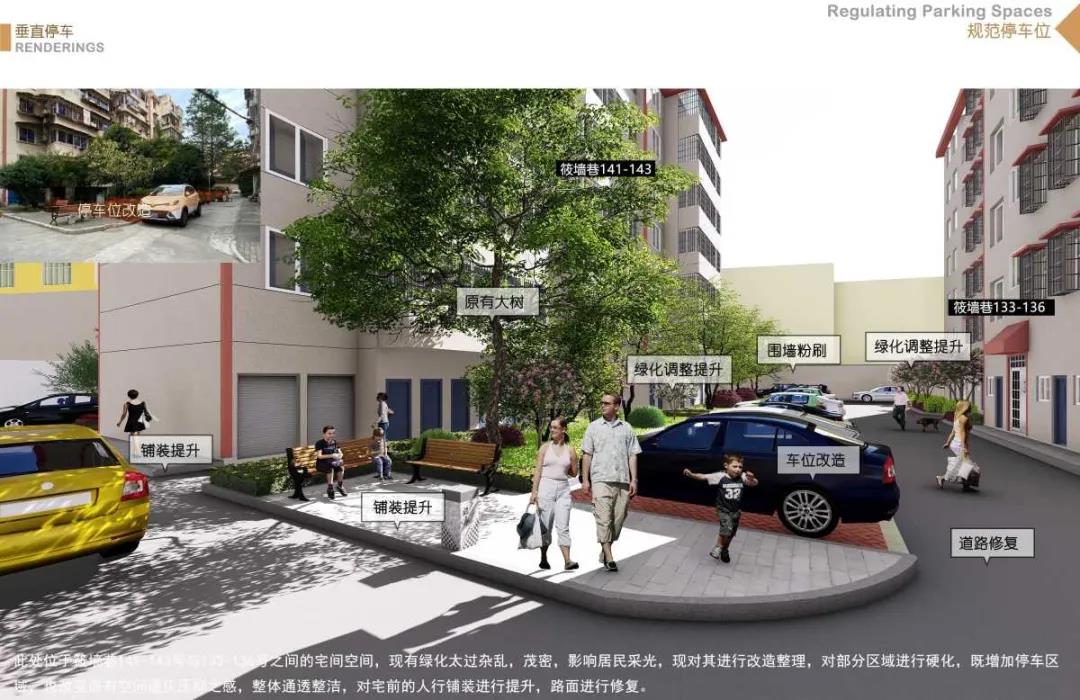 据悉,本次项目将对小区137幢楼栋设施展开改造修缮,包括屋面防水改造、铸铁雨水管更换、更换楼道窗为平移窗、增设亮化设施、更换室外扶手等,并全面修补粉刷外立面。同时,将新增晾晒设施、展开整治店招、增设特色休憩区、翻新公共设施等,全方位提升小区和谐文明环境。为改善老旧小区停车难现状,改造后小区将拥有停车位541个,其中平行式停车位443个,垂直式停车位98个。