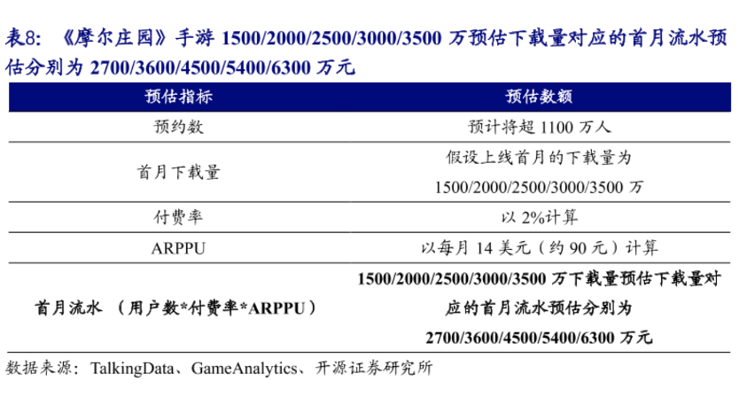 《摩尔庄园》的推出,被认为是吉比特另一款可以长期获得稳定流水的产品,开源证券预计了上线首月吉比特的流水: