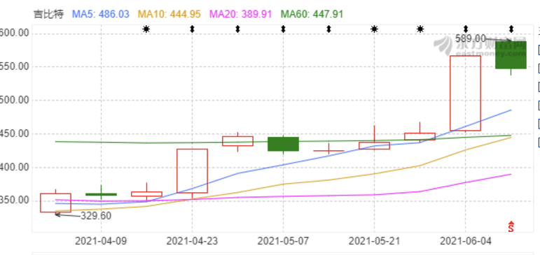 6月1日上线的《摩尔庄园》成了爆款,市场其实在5月31日就已经率先做出反应,在那之后,吉比特的股价疯涨到了589元/股,最高涨幅超过30%。