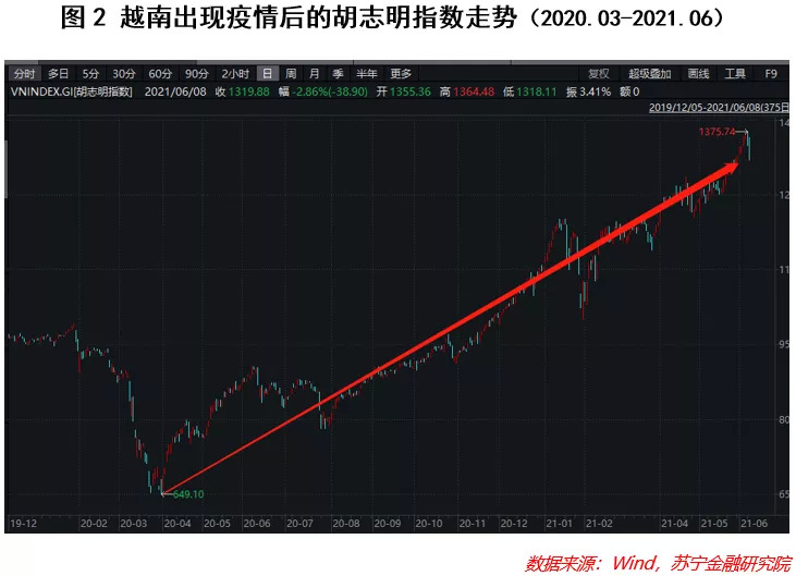 如果从越南疫情出现后,股市跌至最低点的2020年3月末至今,胡志明指数涨幅更是超过了100%。