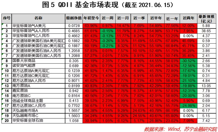 从统计的数据来看,年初至今取得较高收益的QDII基金主要有四类:一是投资于商品的,例如投资油气、铁矿石、钢铁、铜的主题基金,主要是受益于国际商品价格的大幅走高;二是投资于特定市场的,典型如投资越南的天弘越南基金,投资标普的中银标普基金,投资法国的华安法国CAC40等;三是投资于房地产的,如广发美国房地产、上投摩根富时REITs、嘉实全球房地产等,主要是受益于房地产市场的大幅度增值;四是投资特定行业板块的,如医疗保健、互联网科技等,主要是受益于数字经济及疫情带来的医疗保健需求。