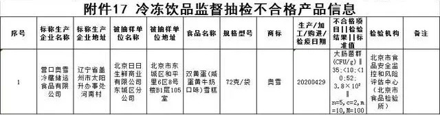2020年奥雪品牌的双黄蛋雪糕抽检不合格