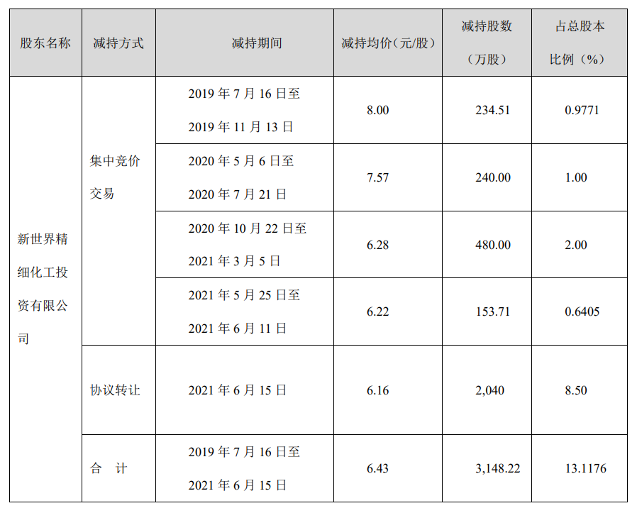 这个举动并不意外,从公开信息看,新世界投资从2019年7月16日至2021年6月11日一直都在默默减持着世龙实业,期间合计减持了1108.22万股,占总股本的4.6176%,减持均价为6.92元/股,尤其在2020年第三季度里减持动作较大,退出之意明显。