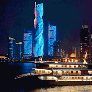 海天中心精心设计制作的这场“灯光盛宴”,有“全国面积最大单体建筑灯光秀”之称,主要由“启幕仪式”、“青岛之美”、“好客山东”三大部分构成,内容上由点及面,层层推进,依次诠释了“新地标”海天中心,青岛的城市形象以及灿烂的齐鲁文化。