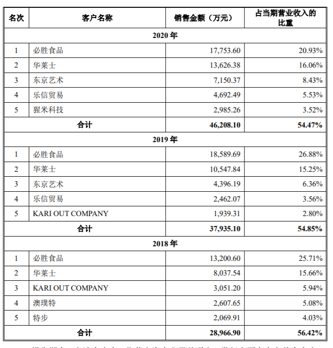招股书显示,报告期内,南王科技对前五大客户的销售金额分别为2.90亿元、3.79亿元和4.62亿元,占同期营业收入的比重约为55%,客户集中度较高。