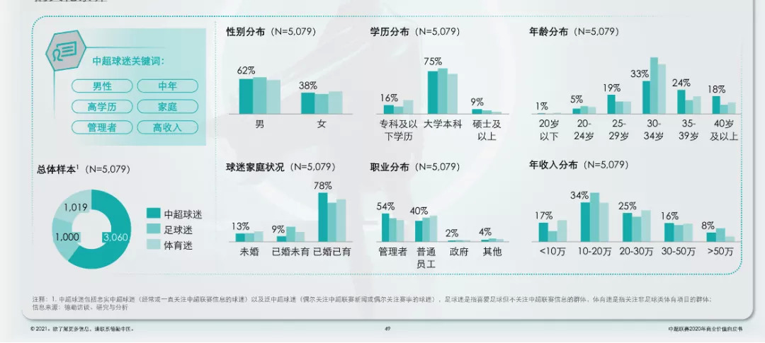 根据德勒研究的调查结果显示,国内球迷以中年男性为核心群体,年龄集中在30-40岁,占比五成以上。