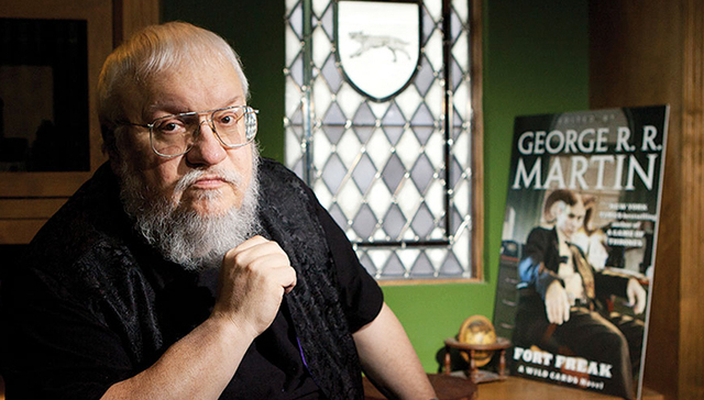 这是非常愉快的一刻,67岁的马丁的确似乎在享受生活。他也应该享受生活——截至2015年4月,他的书已卖出逾6000万册。《冰与火之歌》(A Song of Ice and Fire)是一部令人眼花缭乱、描绘中世纪王国间血腥混战的奇幻巨作,已完成的五部共有5000多页,再有(很长的)两部之后,该系列才会完结。